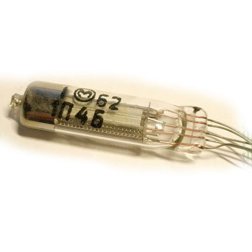 Пентод высокочастотный 1Ж18Б с короткой характеристикой. Предназначен для усиления напряжения высокой частоты до 60МГц.