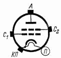 | Напряжение отсечки тока анода отрицательное (при Iа=20 мА) | £ 100 В |