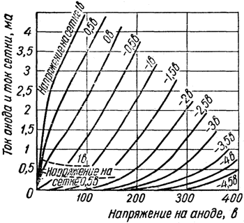 Характеристики зависимости токов анода и сетки от напряжения на аноде